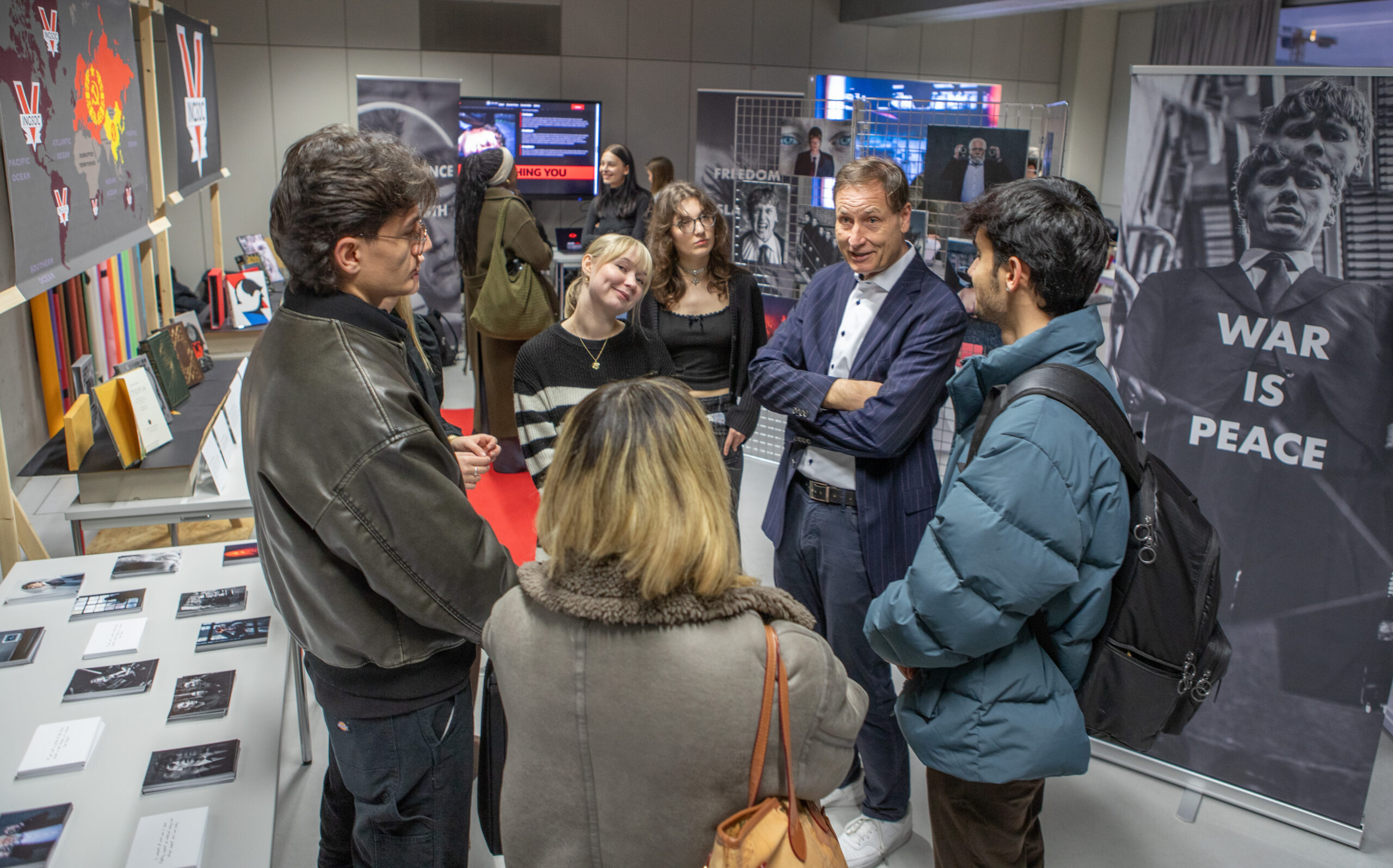 This semester’s campaign management lectures project: “REA𝗟𝗜𝗧𝗜𝗘𝗦” was inspired by the George Orwell novel “1984” re-imagining its themes of truth and power. Prof. Dr. Volker Jansen lead team of more than 70 students from different study courses at Stuttgart Media University and exchange students from our minor program worked together to create a complete campaign, including a professional photo shoot, a short film, a webpage, and, of course, a printed book.